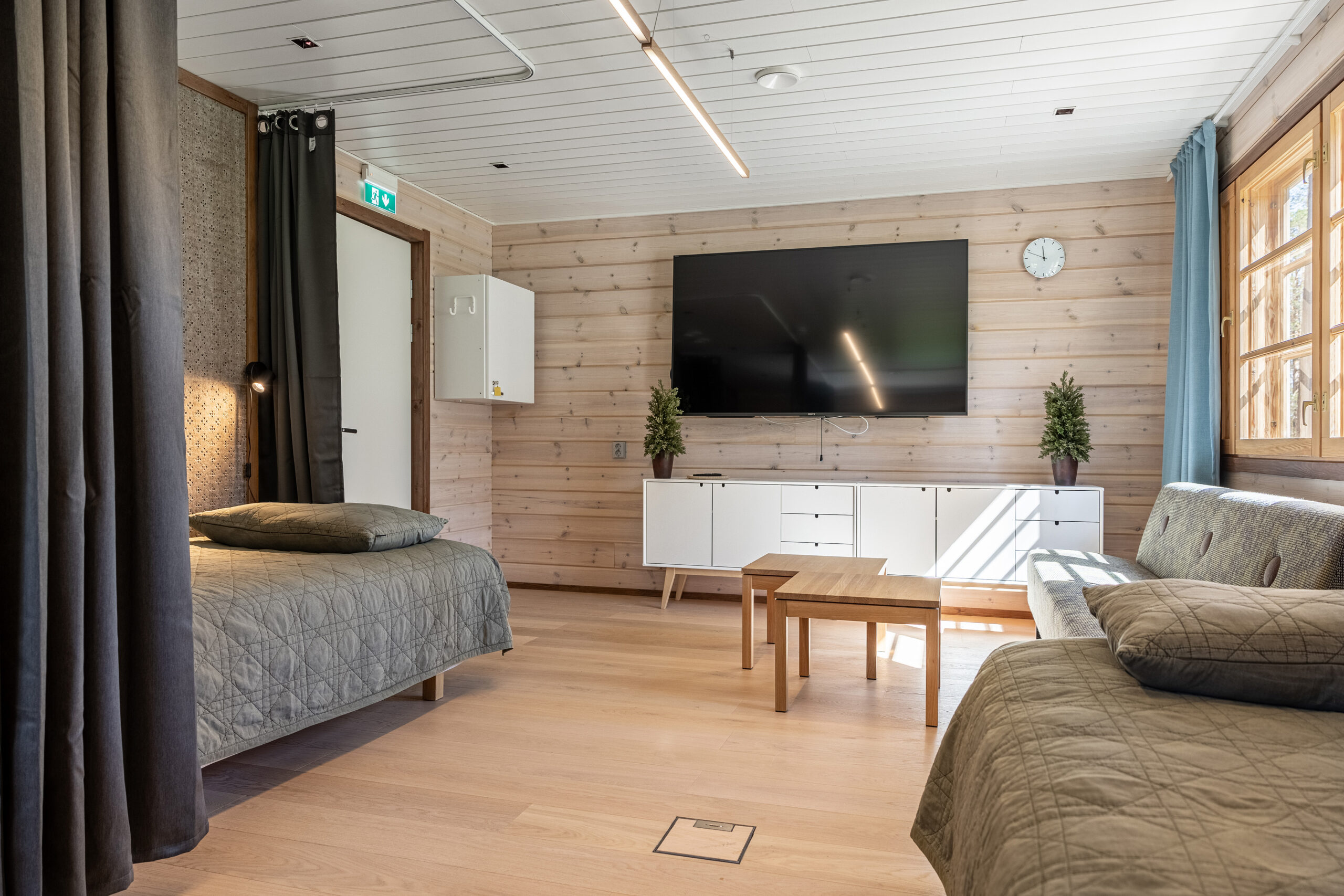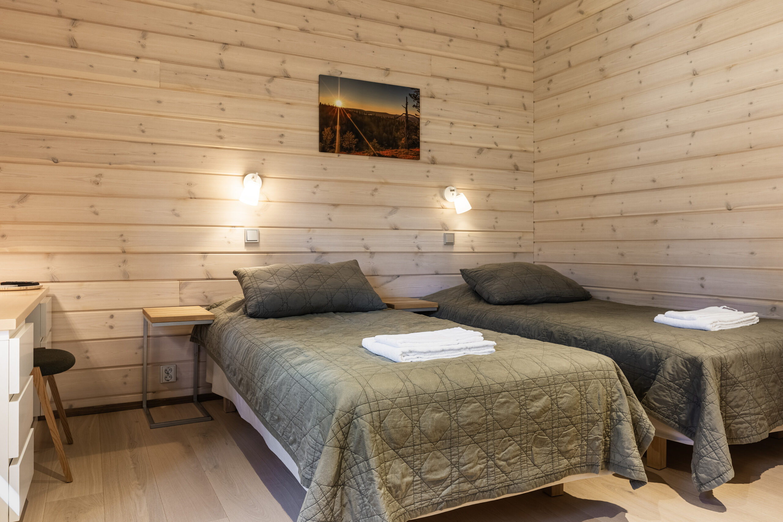 3 x tilava kahden hengen huone kahdella 100cm leveällä sängyllä, omalla kylpyhuoneella, TV:llä, hyvällä wifillä, työpöydällä, kuivauskaapilla ja vaatekaapeilla