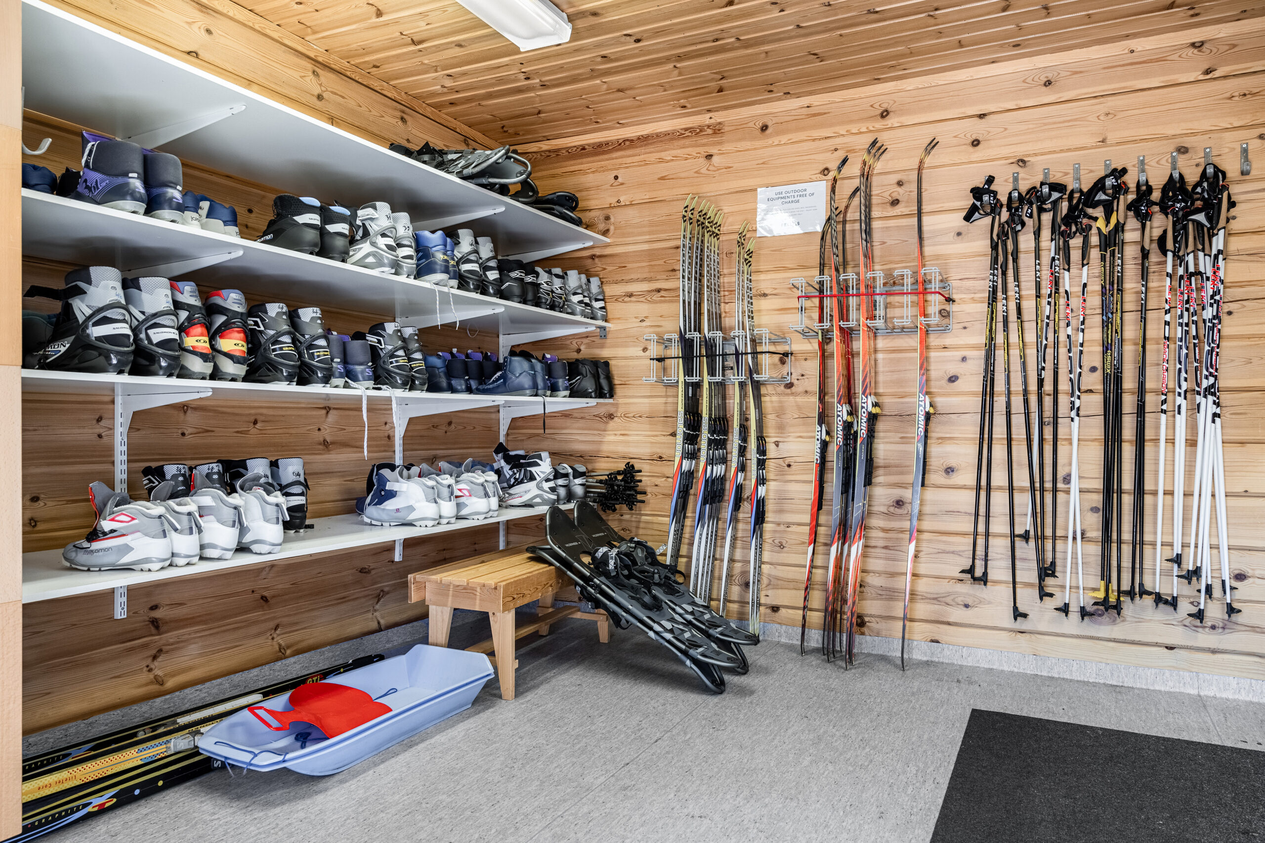 Villa Fellas tarjoaa vieraiden käyttöön maksutta ulkoiluvälineitä kuten 12 paria hiihtosuksia, kolme polkupyörää, lumikenkiä ja pulkkia. Lämpimässä huoltotilassa voit säilyttää tai huoltaa välineitäsi.