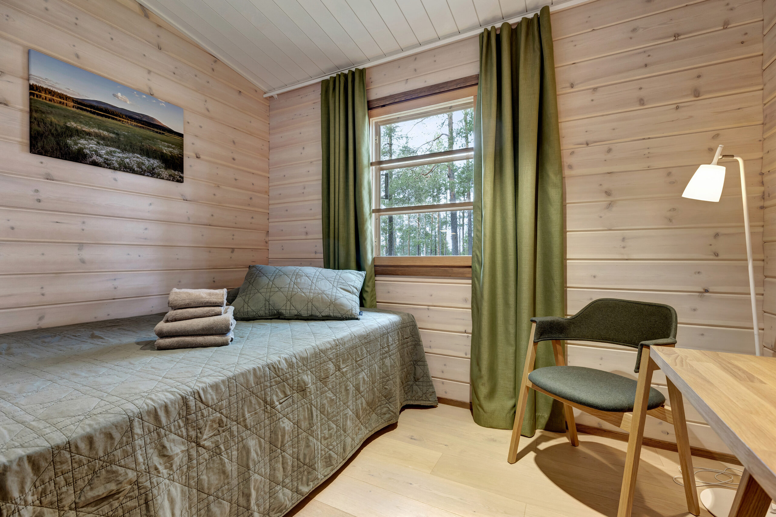 4 x pienempi huone yhdellä 140cm leveällä sängyllä, omalla kylpyhuoneella, TV:llä, hyvällä wifillä, työpöydällä, kuivauskaapilla ja vaatekaapeilla